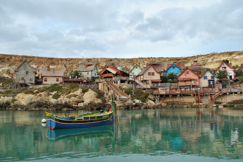 An arrogant and bored ticket sale woman sold us the tickets and crossed out the ship on the map, saying it doesn't run this day. OK so we won't get a boat ride, we thought and got in. We didn't even get all the way down the hill with many fairy tale like houses, when a boy from the boat asked us if we'd like a ride. So we spend half an hour in the boat on the emerald clear sea, rocks, strange shapes and got to learn about Popeye, Gozo and life on Malta from our boatman. Wind in our hair, endless sea around us and the carelessness of a vacation – cream of the crop! Later on we visited each house of Popeye's village and became childish – as I've said: child for the rest of my life. We took photos with Popeye and his Olive Oil and from the lookout tower saw the fairy tale world underneath and enjoyed Rum Punch by the sunset. You don't do that every day.