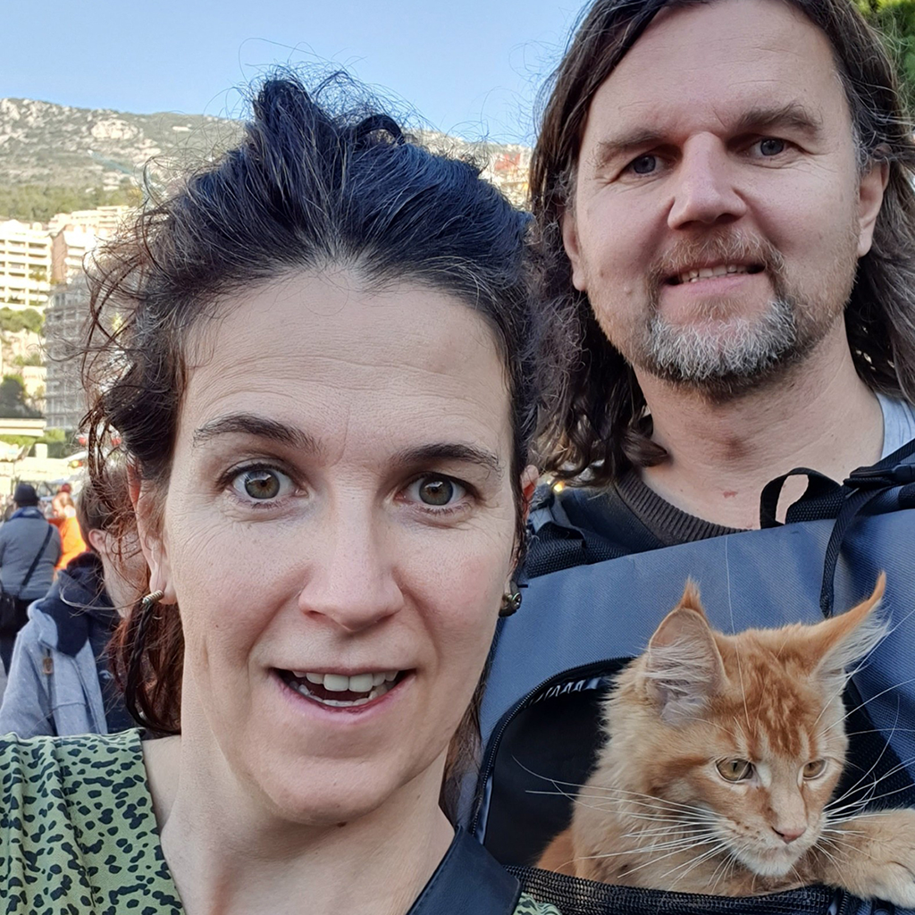 Mini, an orange Maine Coon, sets out on travel adventures with his owners, Nataša Lukežič and Tomaž Pajek. Since their trip from Côte d’Azur to Barcelona he always accompanies them on their journeys. Mini has visited France, Switzerland, Spain and Monaco, and he’s a regular guest in Croatia. He thoroughly enjoys riding in the car they use for travelling. And even flying with an airplane isn’t excluded as an option in the future. Passers-by often like to stop the trio and take photos with them. Mini is a true attraction. Mini’s owner, Nataša, tells more about their adventures with the tomcat.