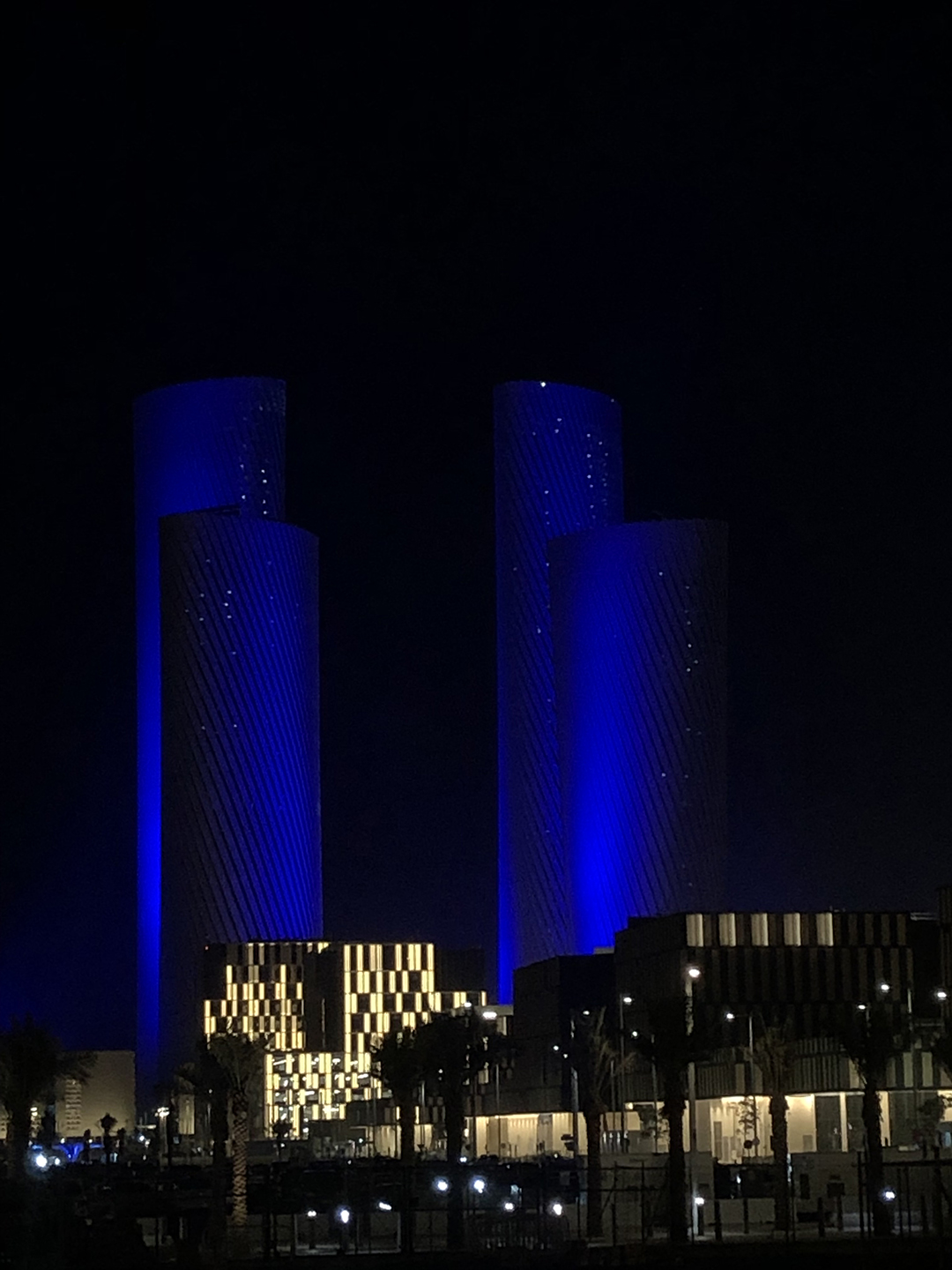 After lunch back at the hostel, we set off again for a new part of the city, to me personally the most beautiful part of Qatar we have seen. Named after the port, Old Port is best known for its beautiful colorful houses and streets that decorate the long promenade along the sea, at the end of which a wide view opens across the sea to the centre of Doha, full of towers and skyscrapers. In this part, we were given some free time to walk, take photos and enjoy the beautiful views, before heading to Lusail for the end of an extremely interesting day. Lusail is close to Doha, and is best known for Lusail Boulevard (a long street where commercials are often filmed and where the celebrations for Argentina's World Cup victory took place) and Lusail Stadium, the venue for the 2022 FIFA World Cup final, which Qataris are generally very proud to have hosted and organised.