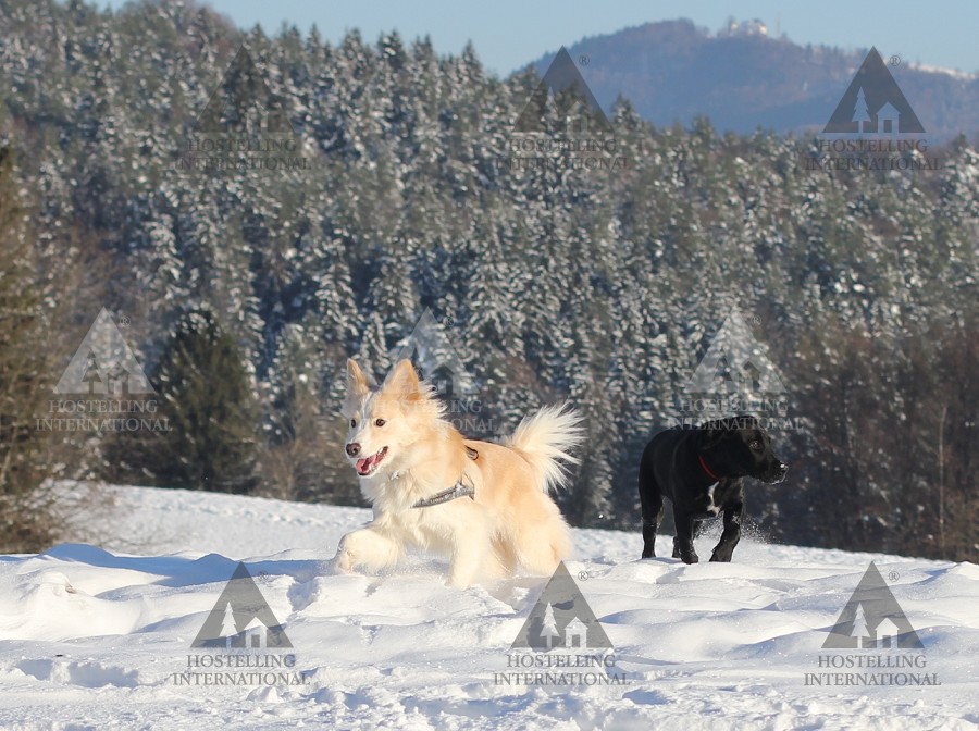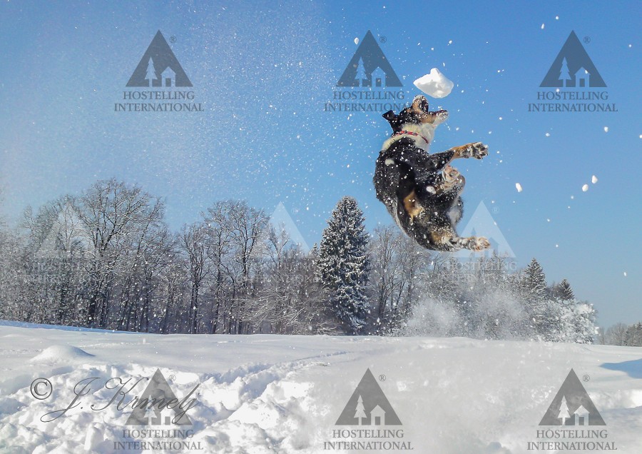 Moja psička Loti obožuje zimo in skakanje po snegu, kar lahko vidimo tudi na sliki.