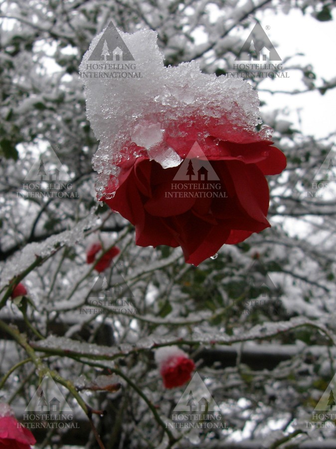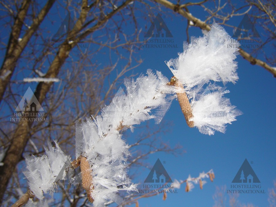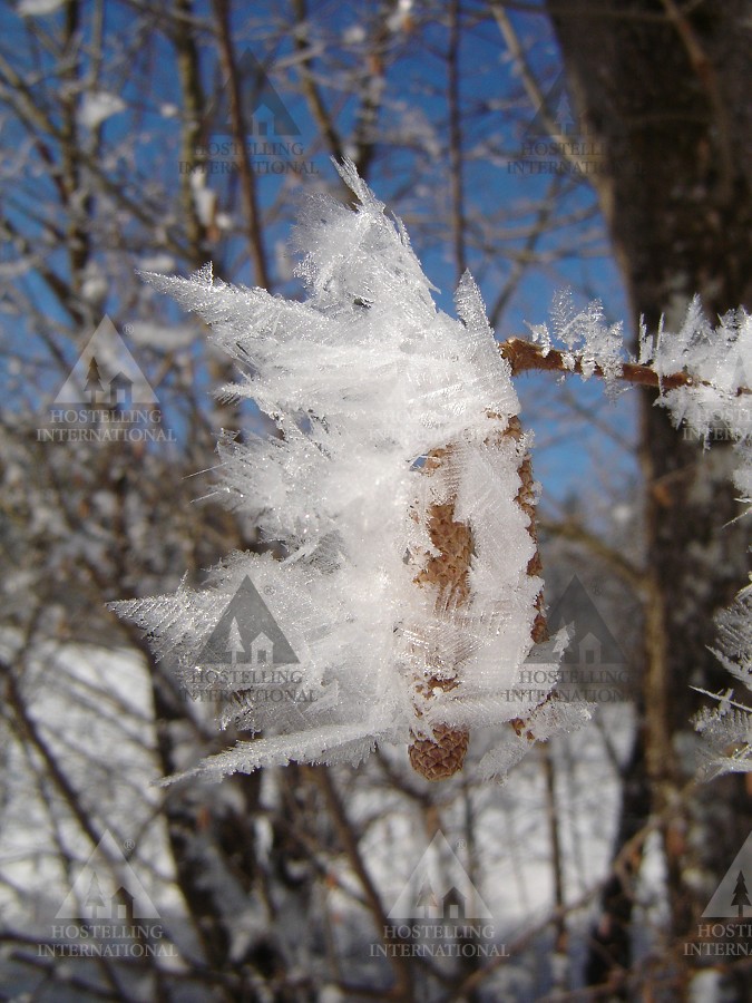 Slika je nastala ko je bilo zunaj zelo mrzlo, zato je na drevesu ivje, ki ga tudi sonce še ni uspelo staliti.